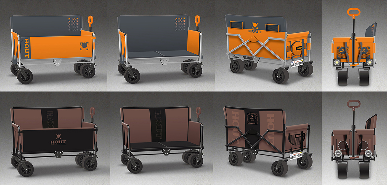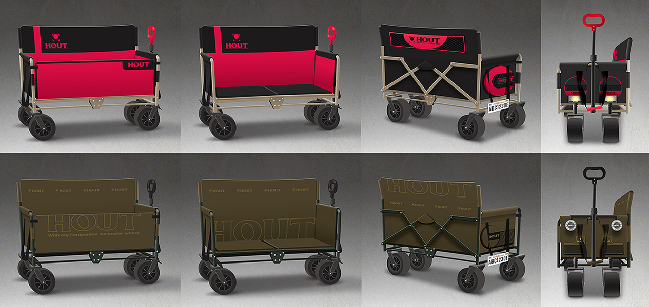캠핑용 웨건 디자인(프레임컬러/그래픽&포켓디자인/조명 등)